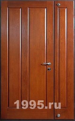 Двустворчатая дверь, декорированная филенчатым МДФ с обеих сторон полотна, станет ярким украшением интерьера. Облицовка полотна панелями МДФ придает этой входной металлической двери наибольшее визуальное сходство с изделиями из натурального массива. Предлагаемая входная конструкция отличается экологичностью, а специальная обработка панелей МДФ позволяет эксплуатировать дверь в любых погодных условиях.