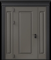 Стальная дверь с металлофиленкой, вставками по бокам, карнизом и порошковым покрытием RAL 7022 (тип №10)