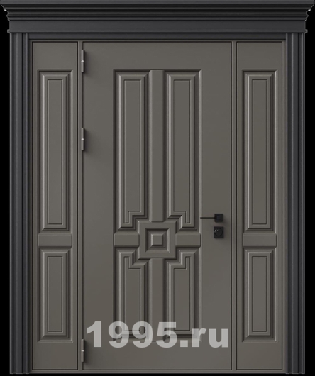 Стальная дверь с металлофиленкой, вставками по бокам, карнизом и порошковым покрытием RAL 7022 (тип №4) Арт: 885