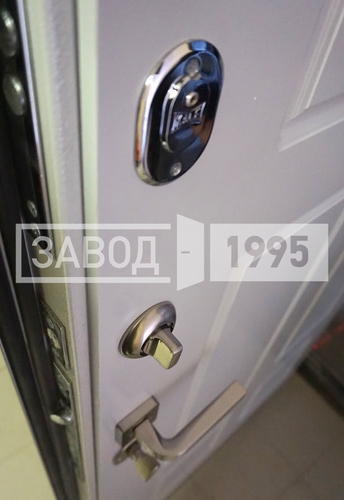 Установленная металлическая дверь, внутрення сторона с отделкой МДФ белого цвета
