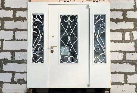Изготовление белой парадной двери с ковкой на заказ
